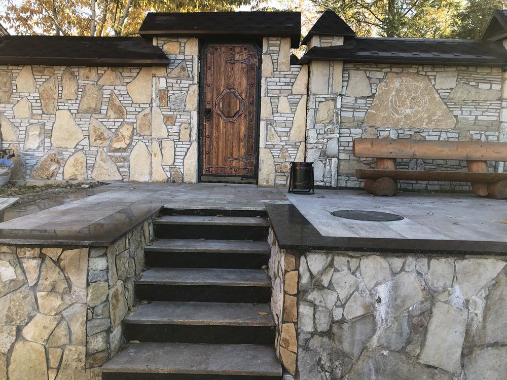Мы выполняем работы по облицовке как внутренних, так и наружных входных групп, весь комплекс дополнительных работ. Это и отделка плов, стен, устройство лестниц натуральным и искусственным камнем.